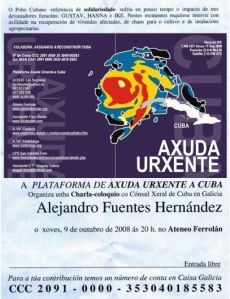 Tamén, teño boas novas para mediados desta semana entrante: o festival o día 10 en favor de Cuba, no Teatro Jofre de Ferrol e unha nova – que ten que ver cunha amiga de Vigo – que ocurrirá o xoves 11 de decembro en Fene, e que aínda non queiro adiantar.