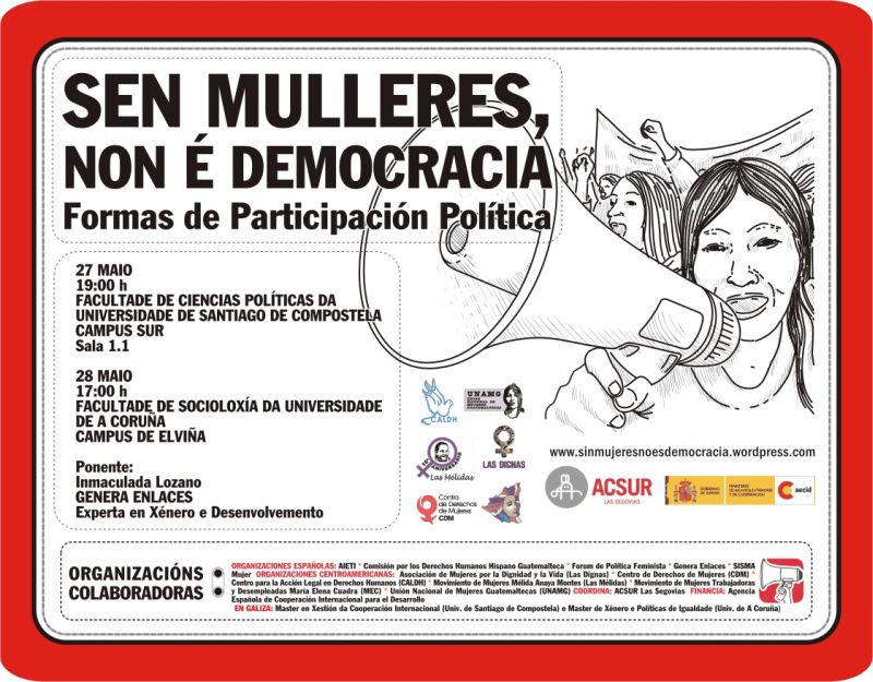Debedes saber que ACSUR, xa ten delegación en Galicia. Ao seu cargo está Dolores Queiro, recen chegada de traballar en Guatemala. Sendo esta substituída polo amigo Ian Ingelmo, que lembraredes que foi o noso profesor de vídeo comunitario en “Ferrol, polo mar e a vida”, xunto con Silvia Chocarro. Para contactar coa delegación na Coruña podedes facelo a través do correo galiza@acsur.org.
