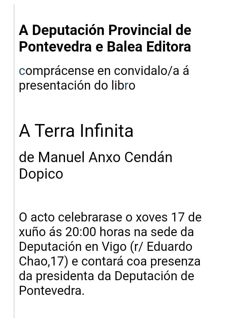 Publicado en A Terra Infinita,Diario de Arousa,Diario de Bergantiños,Diario de Ferrol,Ideal Gallego | Etiquetado #ATerraInfinita,#BaleaEditora | Deixar unha resposta